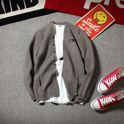 Mùa xuân và mùa thu nam Áo len mỏng mỏng Áo khoác trẻ Hàn Quốc - Cardigan