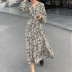 MULVAN2020 đầm xuân mới Pháp cổ chữ V thắt eo thắt lưng váy hoa - Sản phẩm HOT
