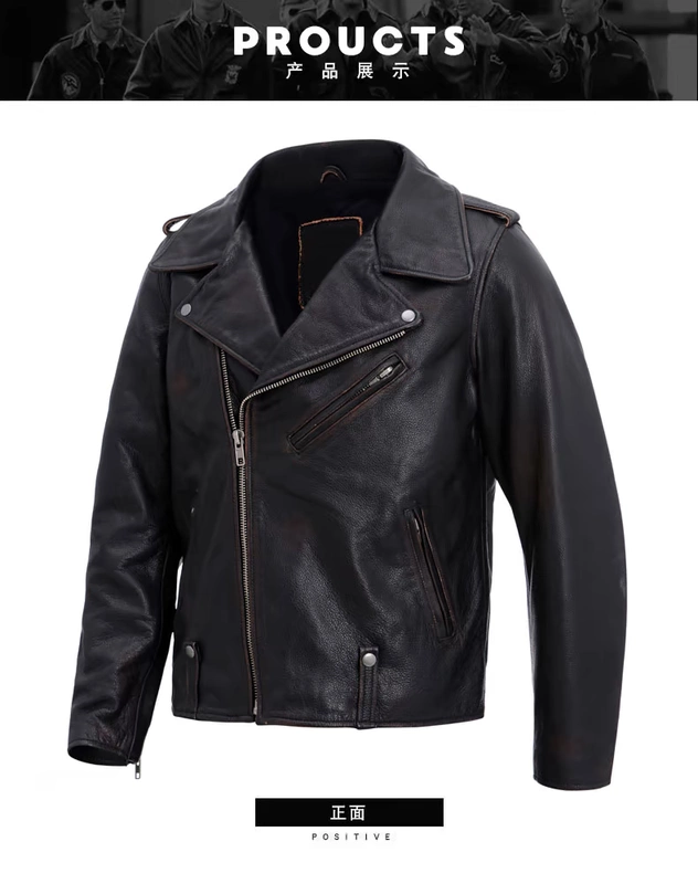 Nặng retro cũ lớp đầu tiên áo khoác da bò nguyên chất áo khoác da da nam xe máy dây kéo chéo Harley cổ điển - Quần áo lông thú