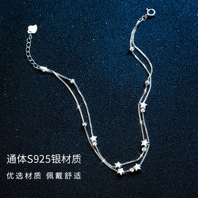Ngôi sao bóng hoa S925 Sterling bạc Vòng chân nữ Thời trang nhỏ tươi mát Phụ nữ đôi vòng chân ngôi sao năm cánh Trí tuệ - Vòng chân