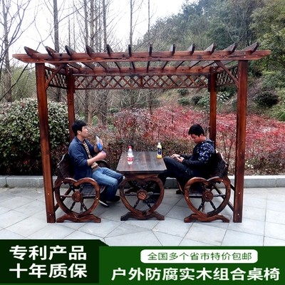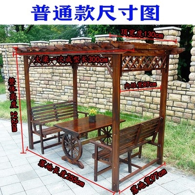 Nhà gỗ gian hàng đơn giản giàn nho chống ăn mòn đồ nội thất ngoài trời sân ngoài trời cacbon hóa rắn gỗ bàn ghế ban công vườn nho khung leo - Bàn ghế ngoài trời / sân