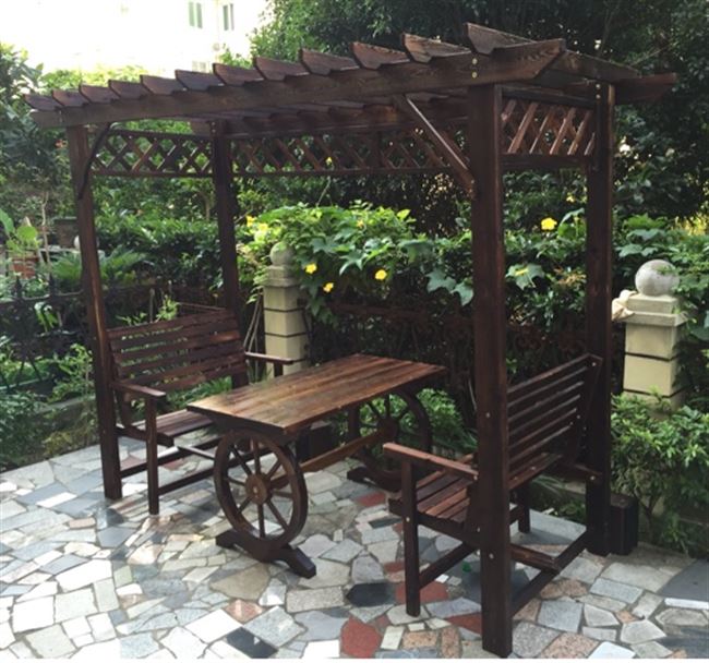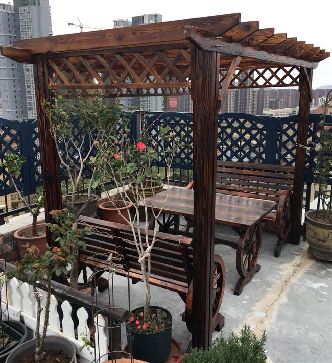 Nhà gỗ sân vườn nhà máy bán hàng trực tiếp khung nho chống ăn mòn gian hàng rắn gỗ hoa đứng đồ nội thất ngoài trời sân vườn bàn ghế khung leo - Bàn ghế ngoài trời / sân