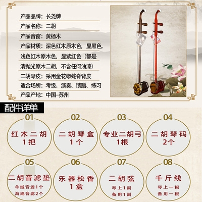 Nhạc cụ đàn nhị bằng gỗ gụ chính hãng kiểm tra biểu diễn chuyên nghiệp thực hành đoàn hát đàn nhị dành cho người lớn đàn piano tùy chọn hàng da đến - Nhạc cụ dân tộc