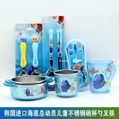 Nhập khẩu Hàn Quốc Bộ đồ ăn trẻ em bằng thép không gỉ của Finding Nemo cho bé bát ăn cơm cốc nước thìa dĩa thìa đũa bộ đồ ăn - Cup / Table ware / mài / Phụ kiện