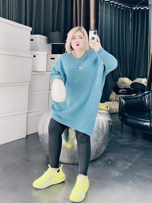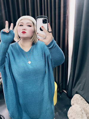 Phiên bản Hàn Quốc của kích thước lớn phụ nữ phong cách phương tây tuổi giảm 200 kg chất béo MM không thường xuyên giản dị áo len tay áo len triều che thịt - Áo len thể thao / dòng may