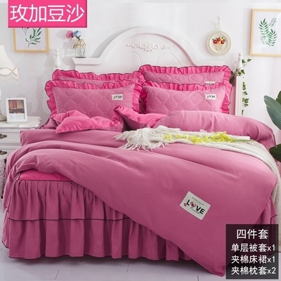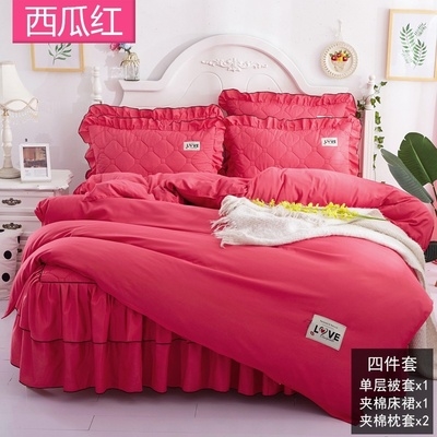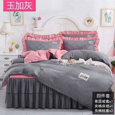 Phiên bản Hàn Quốc của váy liền màu chần bông đơn mảnh cộng với bông dày công chúa gió không trơn trượt ga trải giường váy trải giường mùa đông - Váy Petti