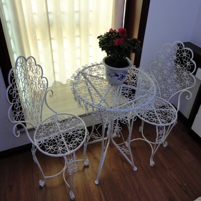 Phong cách châu Âu sắt rèn retro hoa mận ban công cà phê sáng tạo cờ vua và thẻ thư giãn quầy bar ngoài trời bộ bàn ghế bộ đồ nội thất đặc biệt - Bàn ghế ngoài trời / sân