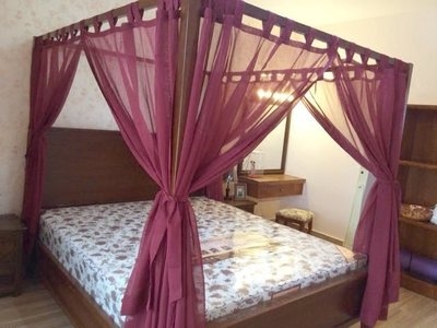 Phong cách Đông Nam Á Trung Quốc bốn hậu có màn trang trí giường sling rượu vang đỏ vải lanh mịn trang trí đám cưới rèm chống muỗi - Bed Skirts & Valances