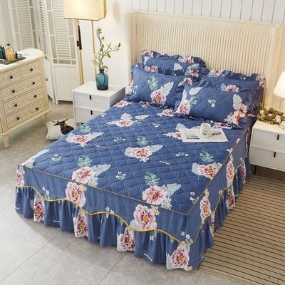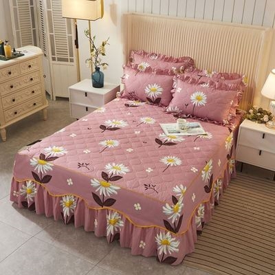 Phụ kiện bộ đồ giường Bộ khăn trải giường bằng vải cotton tinh khiết Bộ ba mảnh vải cotton 1,8m 1,5m giường nệm chống trượt Bộ trải giường một mảnh khăn trải giường - Váy Petti
