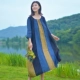 Qi Bai 2019 khí chất mới của phụ nữ mùa hè ngắn tay cổ tròn ramie tinh khiết khâu váy dài văn học đầm lỏng - Váy dài
