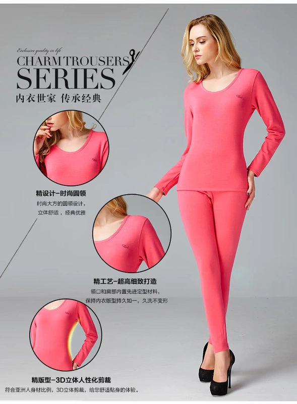 Qiaojia 32403 mẫu nữ dày cộng với chất liệu nhung nóng Đồ lót mỏng phù hợp với Qiuyi Qiuku - Phù hợp với nóng lên