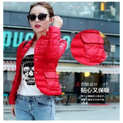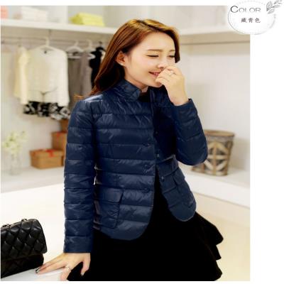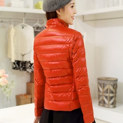 Quần áo bảo hộ nữ xuống áo khoác dài vừa vặn với cổ áo nhỏ mùa xuân và mùa thu nhẹ - Xuống áo khoác