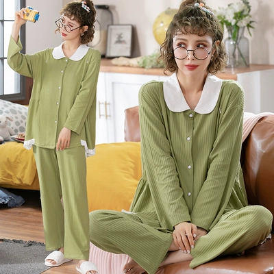 Quần áo bầu, quần áo cho con bú bằng vải cotton nguyên chất cho bà bầu mùa hè, bộ đồ ngủ bà bầu rộng rãi sau sinh, bộ đồ phục vụ tại nhà cho bà bầu mùa xuân và mùa thu - Giải trí mặc / Mum mặc