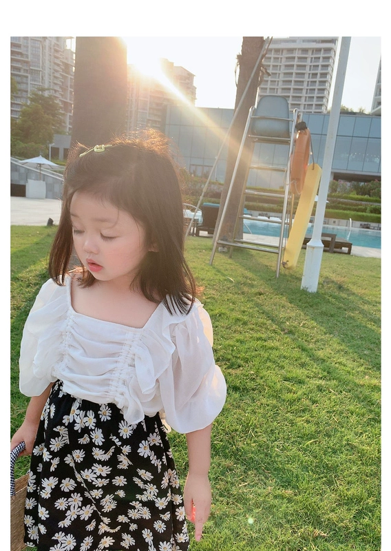 Quần áo trẻ em mùa hè 2020 áo sơ mi ngắn tay bé gái phong cách phương tây Áo phông thời trang trẻ em vừa và nhỏ sơ mi trẻ em - Áo sơ mi