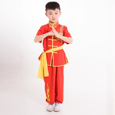 Quần áo võ thuật trẻ em Kung Fu dài tay bé trai và bé gái mẫu giáo trẻ em đào tạo học sinh biểu diễn võ thuật quần áo luyện tập - Trang phục
