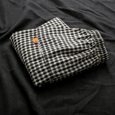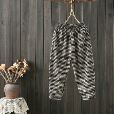 Quần cotton và vải lanh cắt quần nữ Xia Wenyi retro lỏng và mỏng kẻ sọc thường xuyên quần harem quần lanh chân quần củ cải - Quần Harem