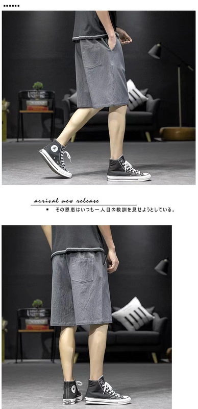 Quần crop top nam giản dị 2020 mùa hè Phiên bản Hàn Quốc của xu hướng size lớn cho nam rộng rãi hợp thời trang thương hiệu quần lanh năm điểm - Quần tây thường