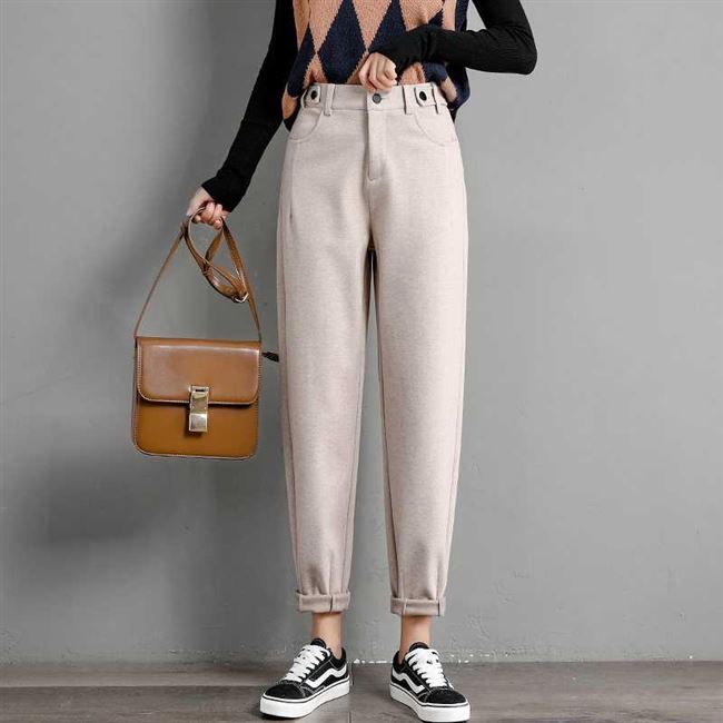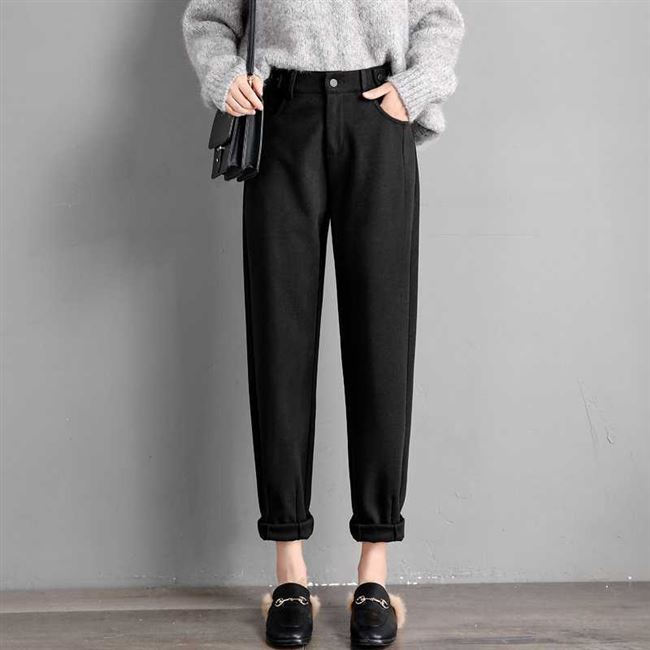 Quần len dày của phụ nữ mùa thu đông 2019 Quần mới của phụ nữ lỏng lẻo chân thường cha già bà củ cải quần hậu cung - Quần Harem