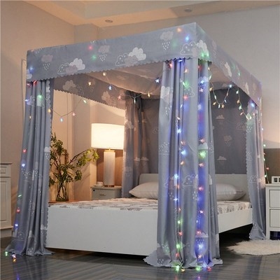 Rèm vải che nắng rèm cửa giường ngủ rèm cửa gia đình phòng ngủ khung trần chống bụi tích hợp 1.5m5 mùng 1.5m1.8 - Bed Skirts & Valances