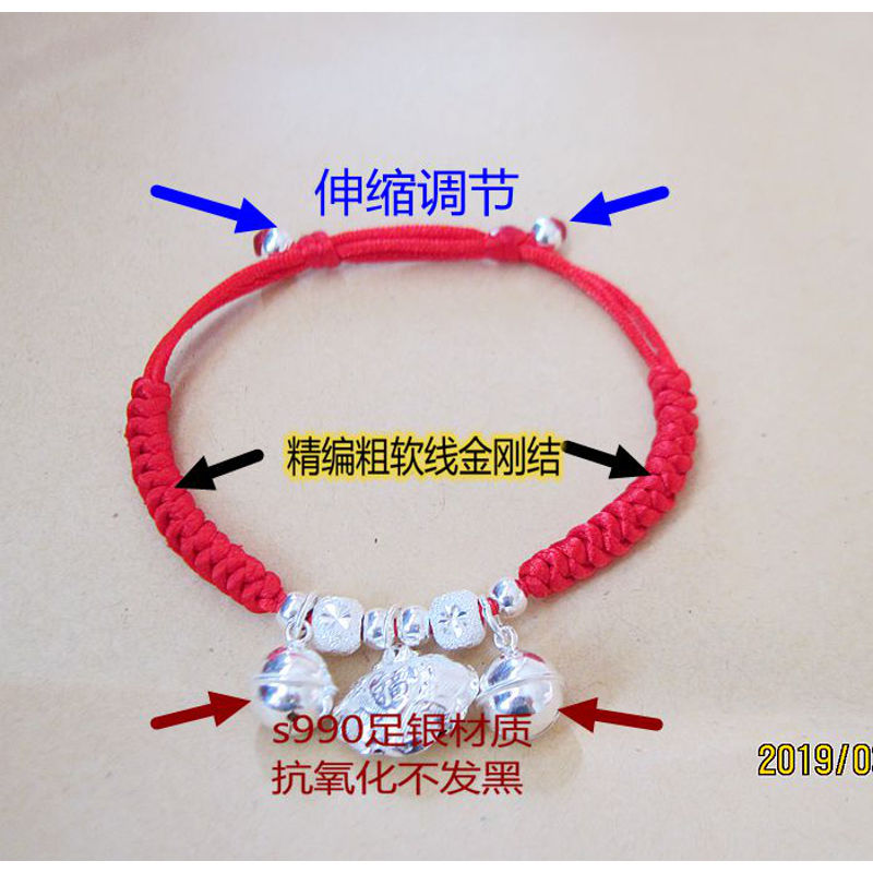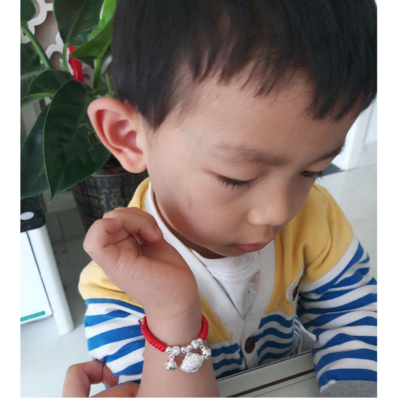 S99 sterling bạc chuông cuộc sống lâu dài và giàu có khóa trẻ em bé trang sức trẻ em dệt tay sợi dây màu đỏ vòng cổ chân - Vòng chân