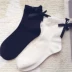 Tất cotton nữ tính Nhật Bản trang trí thắt nơ, tất nữ đơn giản, đa năng diện thu đông, 2 màu - Bít tất nữ