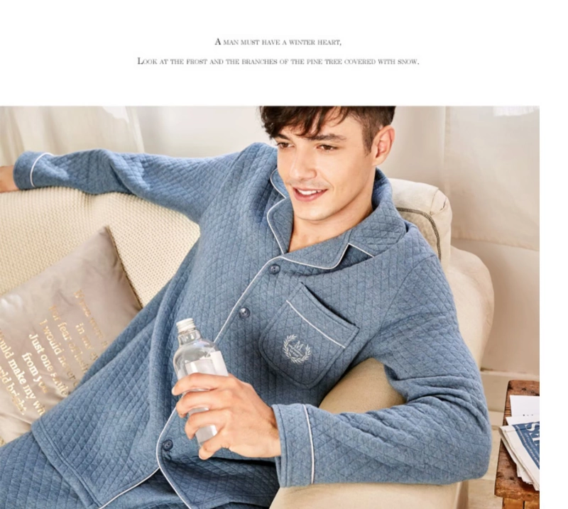Tiêu chuẩn Mỹ bộ đồ ngủ chần bông dày ba lớp mới hai mảnh phù hợp với nam giới mùa thu và mùa đông cotton ấm áp dịch vụ tại nhà - Bộ Pajama