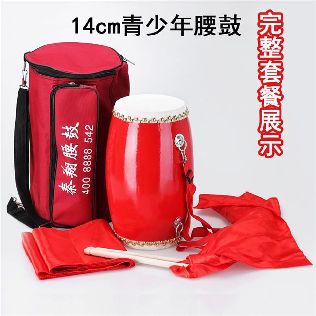 Trống eo 14cm + gậy trống + dây đeo + đai lụa 4 mét + #