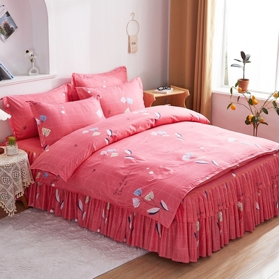 trong lưới màu đỏ cotton ba mảnh cotton phong cách công chúa đơn đôi chăn ga trải giường váy bộ đồ giường cô gái - Váy Petti
