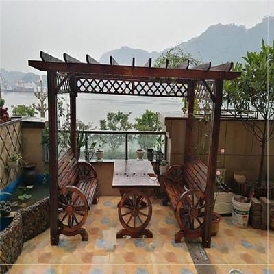 Trụ cột bằng gỗ đổ trong sân không thấm nước đơn giản phần còn lại gỗ cacbon hóa ngoài trời giàn nho sân trong chống ăn mòn gỗ đồ nội thất ngoài trời - Bàn ghế ngoài trời / sân