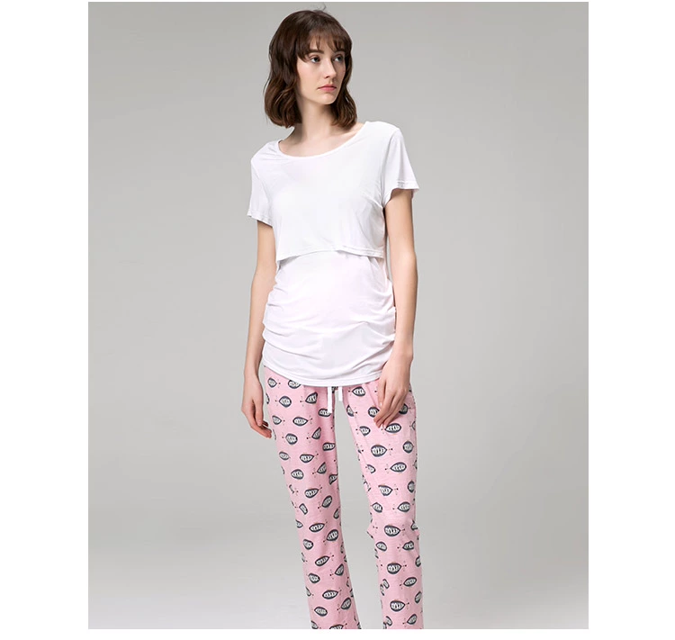 Váy bà bầu tuyệt vời cho bà bầu mùa hè cotton dệt kim nhà hộ sinh dịch vụ khuôn cốc điều chỉnh loại cho con bú ngắn tay 077126 - Giải trí mặc / Mum mặc