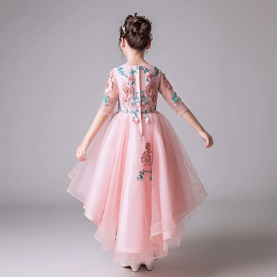 Váy công chúa màu hồng cô gái phồng gạc con chủ nhà trình diễn catwalk váy hoa cô gái cưới trang phục piano mùa hè - Váy trẻ em
