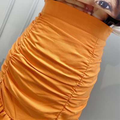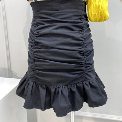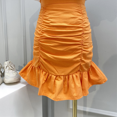 Váy đuôi cá bèo nhún nữ mùa hè 2020 mới rắn màu cạp cao kết hợp túi ngang hông váy xếp ly mỏng - Váy