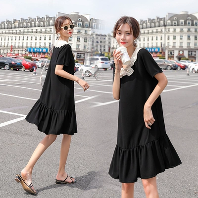 Váy mùa hè váy dài giữa mùa hè 2020 mới ngắn tay rộng rãi giản dị kích thước lớn quần áo của phụ nữ che thân váy mỏng - Váy dài