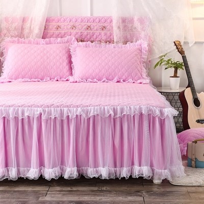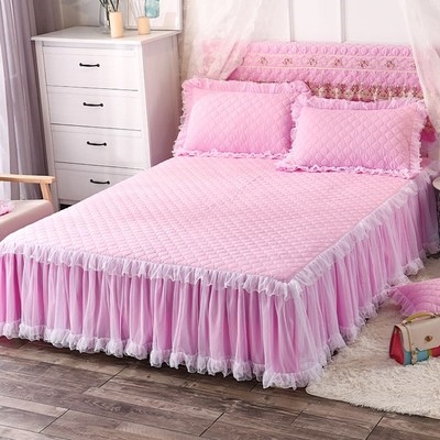 Váy ngủ chống trượt phong cách công chúa cotton chần bông ren hồng một mảnh bìa đôi dày trải giường chống trượt - Váy Petti