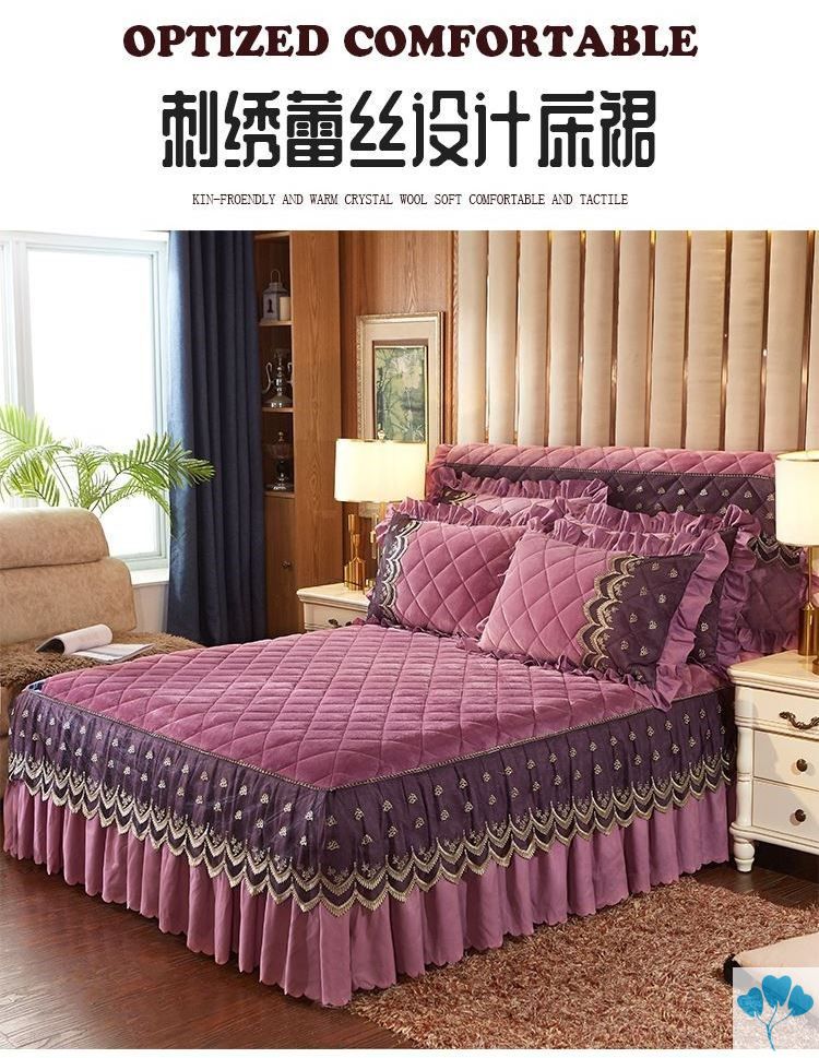 Váy trải giường sang trọng ngắn 1,5 mét bìa bảo vệ hai mặt ren chần ba mảnh váy ngủ dày phong cách mục vụ - Váy Petti