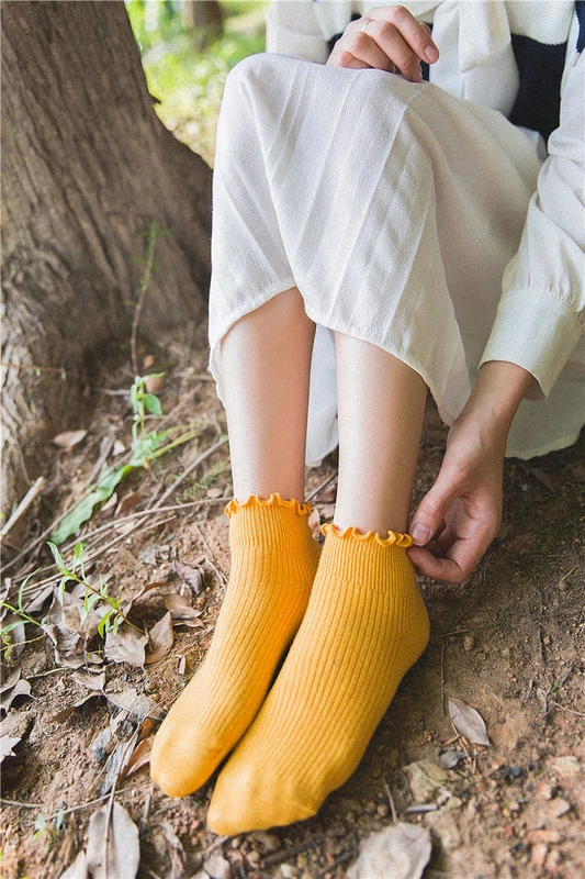 Vớ bông rừng Hàn Quốc có tai gỗ Vớ bông ren học sinh Hàn Quốc Vớ bông nữ Nhật Bản ngọt ngào và dễ thương Vớ nữ - Vớ bông