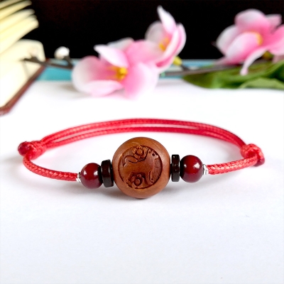 Vòng tay chu sa bằng gỗ xoan đào lắc vòng chân tân sinh tân sinh nam nữ mới sinh đôi nam nữ đào trưởng thành. - Vòng chân