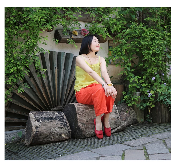 Wangcheng Summer mới người hâm mộ văn học đơn giản đơn giản màu cơ bản vải lanh sling hàng đầu của phụ nữ mỏng và thoáng khí - Áo ba lỗ