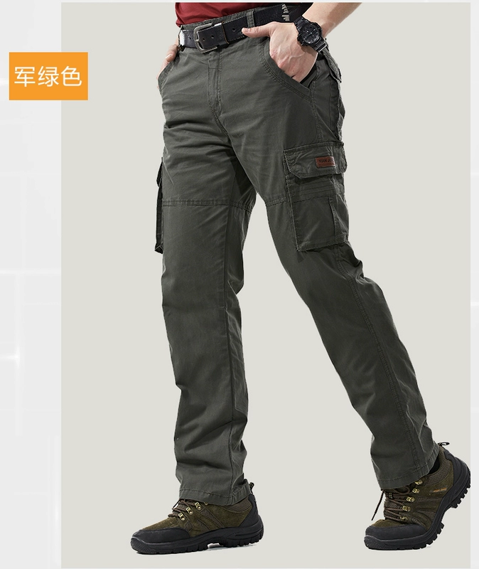 Xe jeep nam mùa xuân và mùa hè quần mỏng mỏng ngoài trời quần cotton nhiều túi quần trung niên quân đội quần dài thẳng - Quần mỏng