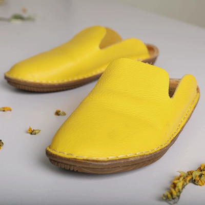 [Yên tĩnh] Shimu Mi 2020 giày da bò thủ công một lớp retro dép da văn học retro dép Baotou - Dép