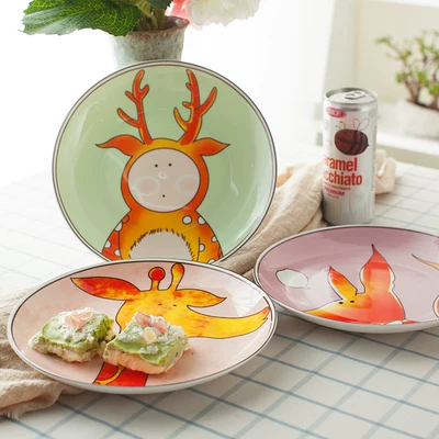 Yomerto Thực phẩm phương Tây Steak tấm Trẻ em Phim hoạt hình gốm tráng miệng sáng tạo món ăn Tấm ăn tối Bộ đồ ăn gia dụng - Đồ ăn tối