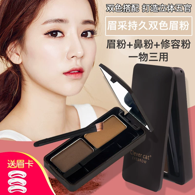 Phấn mắt hai màu dạng bột bút chì kẻ lông mày không thấm nước và không thấm mồ hôi không dễ bị biến màu kéo dài ba trong một không bắt đầu chính hãng - Bút chì lông mày / Bột / Stick