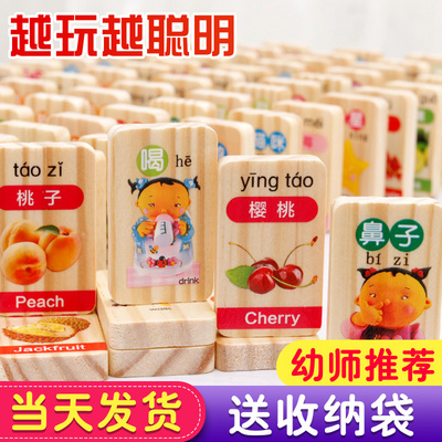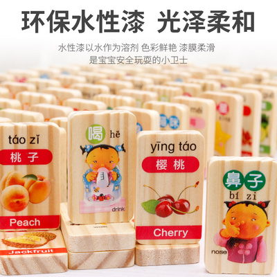 100 miếng trái cây tròn hai mặt ký tự Trung Quốc số domino nhận thức giáo dục mầm non giáo dục khối xây dựng - Khối xây dựng