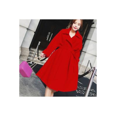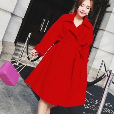 . 2019 mùa thu và mùa đông mới Hàn Quốc màu tím eo eo giữa áo len dài áo len lỏng áo khoác nữ - Trung bình và dài Coat