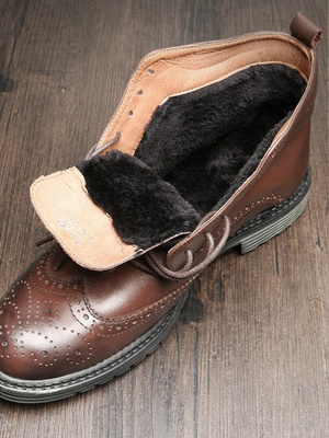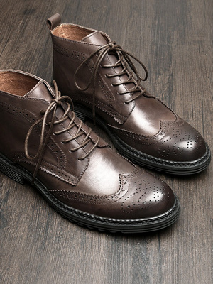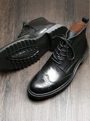2020 mùa đông cộng với giày nhung nam giày cao cổ ngắn broch chạm khắc giày nam triều giày da cao cấp phong cách Anh Martin boots nam - Giay cao