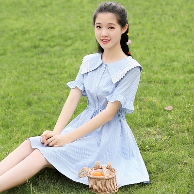 2020 mùa hè mới 12 cô gái lớn trẻ em phong cách phương tây váy kẻ sọc 13 cô gái váy 15 tuổi váy công chúa ngắn tay váy mùa hè - Khác