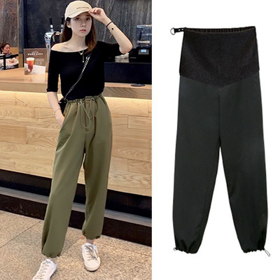 2020 mùa hè mới chùm miệng quần yếm quần âu phụ nữ mang thai lỏng lẻo hoang dã xếp nếp eo cao đèn lồng nâng bụng quần triều mẹ - Phụ nữ mang thai quần / quần bụng