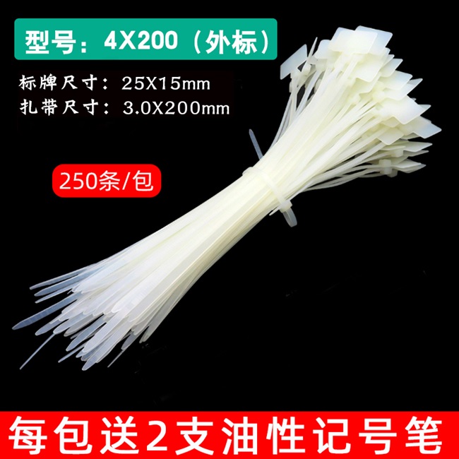 4x200 nhãn nylon dây buộc cáp nhãn thẻ mạng cáp nhãn nhãn niêm phong nhựa không thấm nước Dây buộc cáp - Quản lý dây / dây