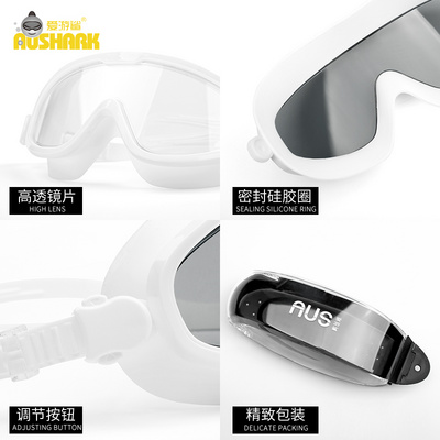 Aiyou Shark Goggles Chống thấm nước và chống sương mù HD Khung lớn Người lớn Kính bơi Cận thị Trẻ em Bộ mũ bơi - Goggles