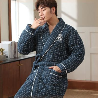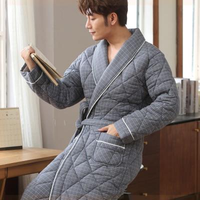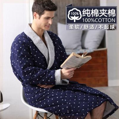 Áo choàng tắm cao cấp và áo ngủ cotton nam size lớn chất lượng dài mùa đông dày ba lớp áo choàng tắm chần bông pijama mùa xuân và mùa thu cotton - Night Robe